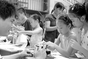 8月12日,浙江上虞百官街道卧龙社区的小朋友在“流动少年宫”里用小机床制作物件。当日,上虞市青少年宫推出的“流动少年宫”开进百官街道卧龙社区,“欢乐科技馆”、“欢乐体育馆”、“欢乐美术馆”、“欢乐小舞台”、“欢乐游乐园”等版块,让暑期的孩子们在家门口尽情玩耍,体验游戏的快乐。 韩坚摄(新华社发)