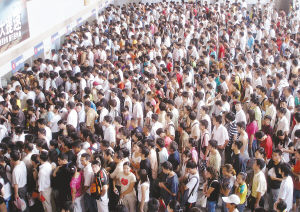 8月18日,苏州火车站售票厅里挤满排队购票的旅客。暑期即将结束,苏州许多学生纷纷购买返校火车票,苏州火车站迎来暑期学生返程客流高峰。王建康摄(新华社发)