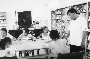 西安市灞桥区骏马村的学生们今年暑假有了读书的好地方。该村的青年农民陈武艺(右一)个人出资为村里建成了图书馆。图书馆藏书3万余册,陈列期刊240余种,以公益性提供书刊借阅为主。