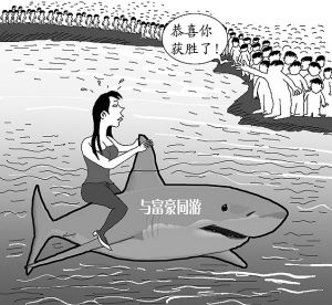 据8月21日《上海青年报》报道,上海某交友俱乐部举办针对男性富豪群体的选美比赛。该俱乐部的网站上称,“最后获胜者除将获得一枚1克拉钻戒外,还将免费与富豪同游海外度假胜地”,“恋情发生率保证达到90%”等。这些诱人的字眼不但吸引了数百名适婚女子,还吸引了不少十八九岁的女大学生。漫画/谢正军