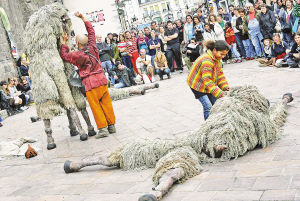 8月22日,演员在法国中部城市欧里亚克的街道上表演,吸引了大批观众。当天开幕的第22届欧里亚克街头剧场表演活动将一直持续到8月25日。新华社/法新