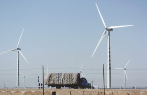 甘肃是全国风能资源丰富的地区之一,理论储量为1.32亿千瓦,目前可开发利用总量为1950万千瓦,占全国风能资源的7.7%。借助这一优势,甘肃大力发展风能产业,累计风能发电已超过1亿千瓦时。目前,玉门和安西县境内总装机容量为200万千瓦的两座风电场正在建设,“河西走廊风能产业带”即将形成。图为玉门市某风电场。新华社记者聂建江摄