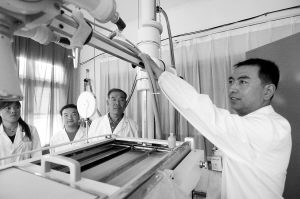 8月29日,甘肃省兰州市七里河区黄峪乡卫生院的医护人员正在操作一台X光机。七里河区已经实现基层卫生院工资财政全额供给。