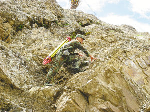 照片:王夕伟正向点位攀登