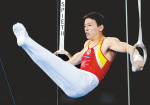 照片:9月6日,中国队以总分281.900分获得第40届体操世锦赛男团冠军。图为黄旭在吊环比赛中。新华社记者朱峥摄