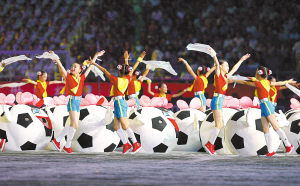 9月10日,2007年女足世界杯开幕式在上海举行。图为开幕式上的表演。 新华社记者 陈飞摄