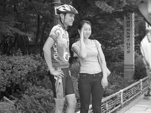 近日在韩国首尔青瓦台游览,发现这些身着运动服装、戴着头盔、酷似体育健将般的小伙子原来全是韩国的“POLICE(警察)”。他们或骑着跑车、或脚蹬溜冰鞋在街面上巡逻,还接受邀请,驻足停留和游客合影。这一创意使警察的形象既青春又亲切。