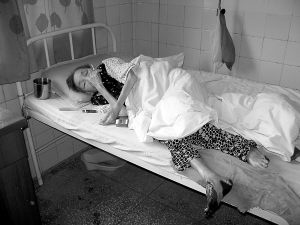 “患者的右足逐渐坏死是患者糖尿病晚期引发的并发症。但患者家属认为,这完全是医院的责任,是因为使用夹板造成的。”蒋主任说,“2006年12月11日,患者家属在没有办理任何手续及未缴纳任何费用的情况下,将病人抬到我们医院住院部,翻窗开门,占用了我们一间有6个床位的大病房,只要有人进来就会被骂出去。两星期前,我们又将病人搬到一个单独的病房。从那时起到现在,病人已经在医院住了半年多了。出于人道主义,我们一直坚持给病人进行抗感染、检测血糖、控制血糖、外科换药等治疗。”