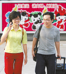 照片:9月15日,全国道德模范候选人文花枝(左)和洪战辉到驻地报到。新华社记者庞兴雷摄