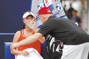 彭帅在今天下午女单第一轮中面对小字辈队友徐一王番时,虽然晋级但却失误频频。“我想可能是因为有压力,自己有点紧张。”彭帅说,“另外,我的右脚脚踝在美网比赛时扭伤了,不敢过多发力。”