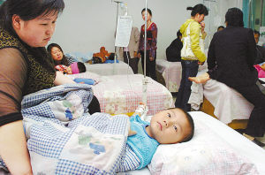 9月20日,患儿在武威市人民医院接受治疗。9月19日,甘肃省武威市实验幼儿园发生儿童食物中毒事件,截至20日17时,送入医院治疗的患儿已经达到260名,其中244名患儿症状明显减轻,另外16名患儿持续发烧,病情较重。事件原因正在调查之中。新华社记者聂建江摄