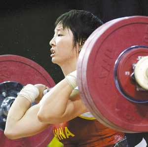 9月20日,在泰国清迈进行的2007年世界举重锦标赛女子53公斤级比赛中,中国选手李萍夺得两金一铜。新华社记者刘大伟摄