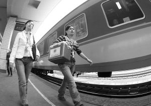9月24日,护送造血干细胞的两名志愿者吴梦(左)和何春花在长沙火车站。当日,湖南湘雅附三医院在完成了对造血干细胞捐献者游鹏先生的造血干细胞采集后,将造血干细胞交付湖南省红十字会的两名志愿者吴梦和何春花,她们在第一时间乘坐火车将其送往武汉,用于救治武汉的一名白血病患者。