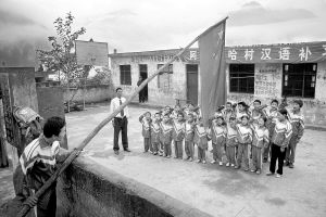 告别阿布洛哈村的时候,正赶上小学的升旗仪式,孩子们大声唱着国歌,一个18岁的才读小学二年级的学生,正慢慢竖起挂着国旗的旗杆。
