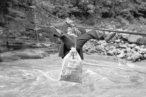 ▲村民要走出大山,全凭这条溜索。