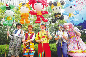 当天,2007年上海浦东陆家嘴国际小丑艺术节在陆家嘴地铁广场开幕。来自5大洲、14个国家和地区、35个团队100余位国际小丑艺术家和优秀演员将在世纪公园、东方艺术中心等地进行为期28天、共计150余场的精彩演出。新华社记者裴鑫摄