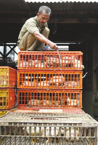 10月8日,在印度尼西亚首都雅加达的一个农场,一名工人在清理鸡笼。印尼卫生部当日证实,印尼廖内省一名44岁女子6日死于禽流感。至此,印尼死于禽流感的人数已升至87人,感染禽流感病毒的病例增至108个。 新华社/法新