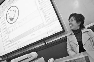 10月10日,河南省郑州市二七区永安街小学五三班班主任李玉娟自己坐在教室里开了一场“无声”的家长会。李玉娟老师通过网络平台召开“网络家长会”与家长轻松交流,一位家长发来的笑脸让她也笑了。 张翼飞摄