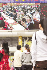 10月15日,市民在南京新街口街头一大屏幕前观看十七大开幕会电视直播。当日,党的十七大在北京人民大会堂隆重开幕。新华社记者孙参摄