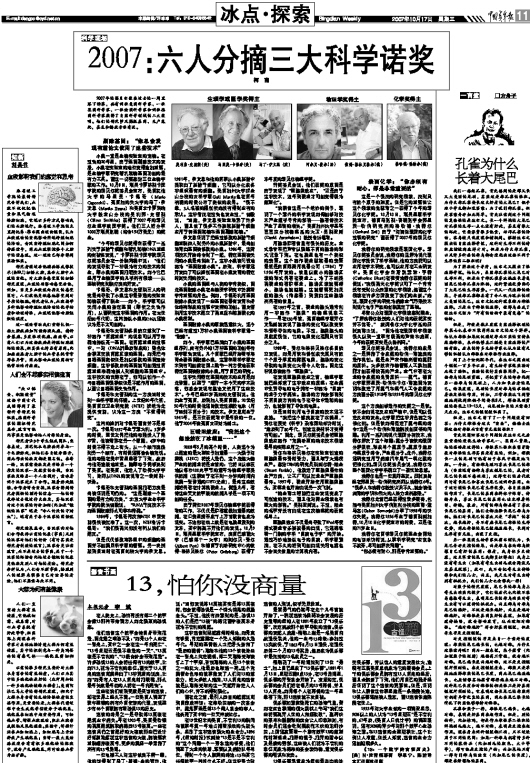2007:六人分摘三大科学诺奖