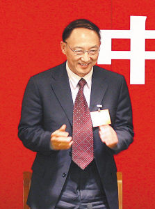 照片:10月17日晚,十七大代表、国家体育总局局长刘鹏在十七大新闻中心接受媒体采访。本报记者晋永权摄