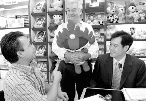 10月29日,两名外国客商在第102届中国进出口商品交易会(广交会)上商谈奥运产品出口事宜。虽然不久前中国玩具在美国遭遇召回风波,但在此次广交会上,中国玩具、尤其是奥运吉祥物福娃仍然受到外商青睐。中国玩具制造商更加注重产品质量和安全性,出口价格普遍上涨。新华社记者壮锦摄