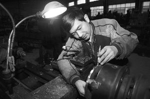 10月31日,安庆市大观区五里村的宋祚革在该村的股份公司工作。安徽安庆大观区五里村大部分土地被城市建设征用,全村1000多户农民成了无地农民。从2005年起,该村村委会通过创立股份制公司吸引农民入股,让他们既能分红、又能就业,妥善地解决了他们生计问题。新华社记者李健摄