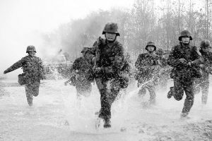 在顶住了“蓝军”一波又一波的攻势后,红军师开始准备发起全面反攻。数百台火炮齐鸣山坳,坦克、步战车就像从地底冒出来一般,向“蓝军”阵地冲去。一时间,浓烟四起,战火弥漫,激烈的枪炮声奏响了一曲战地进行曲。
