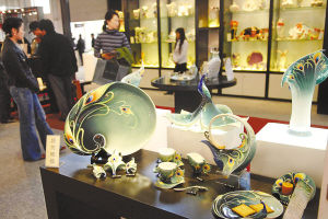 11月8日,观众在北京文博会上欣赏台北主题馆展出的法蓝瓷产品。当日,台北主题馆在第二届中国(北京)国际文化创意产业博览会展览会上亮相,从不同的侧面展示台北的文化、艺术与时尚。