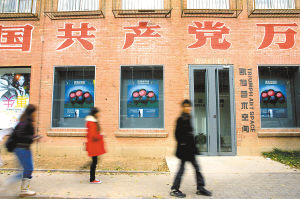 照片:11月2日,北京798艺术区,参观者从一处展厅前走过。798艺术区原为上世纪50年代苏联援建的电子工业厂区。自2002年起,大批艺术家开始涌入,使这里逐渐发展成为国内最具国际影响力的当代艺术区。本报记者陈剑摄