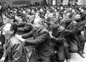 11月13日,公交驾驶员开心地做减压游戏。当日,西安市公交二公司组织600多名公交驾驶员,参加驾驶员心理素质辅导培训课,以提高驾驶员心理素质,纠正不良驾驶心态,防止交通事故发生。袁景智摄(新华社发)