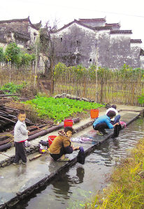 在婺源那7天,我们头顶骄阳,行走在青山绿水、白墙黛瓦的古村落间。所到之处,村村有古桥,家家门口晒着红辣椒。枝头桃、梨掩映的斑驳的古宅上,“文明门第诗书乐,礼仪家邦翰墨香”的手书门联随处可见。无论是在河里戏水的孩童、洗衣的妇女、开小吃店的男子,还是坐在老屋门前晒太阳的老者,都谦恭有礼、怡然自乐。