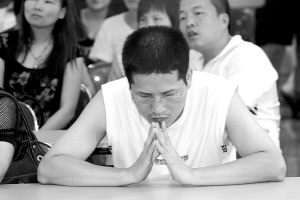 照片:2007年9月1日,申请人祈求摇中。当日,福州市经济适用住房进行公开摇号。杨婀娜摄(资料图片)