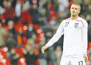 照片:11月22日,2008欧锦赛预选赛E组一场焦点战在温布利球场展开争夺,英格兰主场以2∶3不敌克罗地亚,痛失出线权。图为贝克汉姆泪别欧洲杯。小艾摄