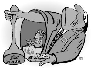 广东虎门一小学内设有“彩票”点,向学生兜售彩票。法人代表是校长本人,经营者是校长妻子。