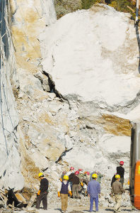 11月23日,抢险人员正在宜万铁路高阳寨隧道滑坡现场清除滑坡体,组织施救。11月20日,位于湖北恩施州巴东县野三关镇的高阳寨隧道外发生岩崩滑坡,导致现场施工的4名工人1人死亡1人受伤2人失踪。另外,从上海返回恩施州利川市的一辆大客车在滑坡事故发生时正好经过此地,被埋入巨石下。经过初步确认,客车上有27名成人,4名儿童。至23日18时,已确认事故造成8人死亡1人受伤26人失踪。