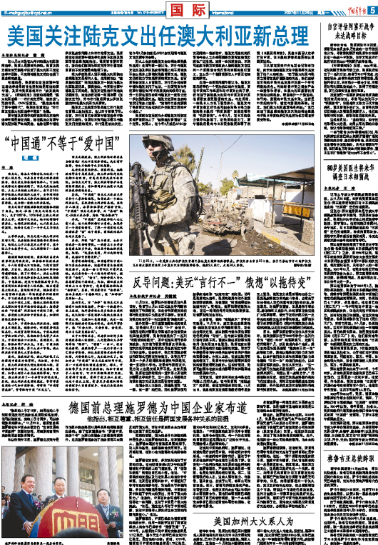 美国关注陆克文出任澳大利亚新总理