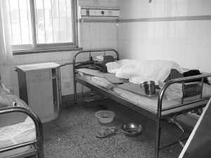 我所见到的在第五观察室停留时间最长的病人,恐怕是那个双足截肢的少年。他2006年4月入院,死亡时间是今年11月初,历时一年零八个月。由于严重营养不良,他瘦得皮包骨头,每天蜷缩在病床的一角,一根根肋骨清晰可见,呆若木鸡地望着每一个出现在他眼前的人。看样子,他不过十五六岁,却不知怎么落到这般境地。他是因为冻伤,双足坏死而做的截肢手术,术后创面又感染,医生只得进一步处理才挽救了他的性命。这一年多的时间里,他多次得过胃肠道感染等病症,可是经过救治,他竟然都活了过来。虽然每天只吃些馒头、花卷,远远不能获得足够的营养,他还是很坚强地活了这么久。而这一年多时间里,许多比他晚进来的人,却再也没能活着走出这间病房。我们曾说过一个黑色笑话,如果可以申请吉尼斯纪录,他或许是“同室病友死亡人数最多”的那个人。