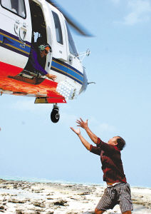 11月27日,南海第一救助飞行队的直升机向被困西沙的渔民空投饮用水。当日,“南海救112轮”和南海第一救助飞行队的直升机对被困南沙、西沙海域的渔民进行了有效补给。受今年第25号强热带风暴“海贝思”的影响,目前共有760多名中菲越渔民被困中国西沙和南沙海域。新华社发