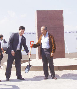 照片:墨西哥卡尔德隆总统与竺延风总经理在培土仪式上。李惠乐摄