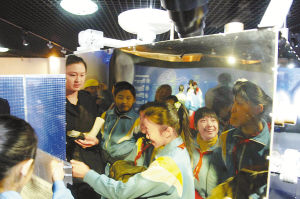 11月28日,孩子们在北京天文馆内观看中国绕月探测“嫦娥一号”卫星模型。当天,“嫦娥绕月工程展”开幕,由中国空间技术研究院依据实际模型图纸设计监制、尺寸与“嫦娥一号”卫星比为1∶2的模型与公众见面。展览除展示我国第一个探月工程外,还通过一面长10余米的坐标墙,浓缩了人类探月的坎坷历程。据了解,该展览将持续半年。陈斌摄