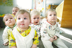 ▲2006年11月29日,几名感染了艾滋病病毒的患儿坐在乌克兰马凯耶夫卡儿童之家的地板上。