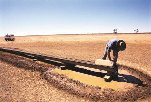 这是2007年2月2日,在澳大利亚新南威尔士州的德尼利昆,农场主沃克在检查水槽。广阔的澳大利亚内陆地区正在经受着干旱的袭击。