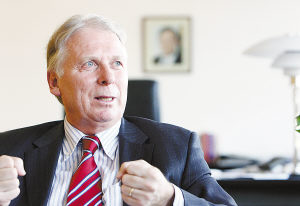 照片:德国驻华大使施明贤在接受本报记者采访。本报记者 郑萍萍摄