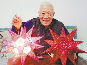 退休后,为了解闷儿,黄松清重操旧业扎花灯玩儿。一次,他扎了个莲花灯送给朋友,朋友把灯挂在公司里,被一个老外瞧见了,非要买了收藏。后来,中国美术馆、首都博物馆都慕名登门请他扎花灯,他扎的十几种花灯都被馆藏了。