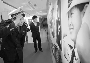 12月14日,北京紫檀博物馆,一位交警正在观看展览。当天,首届“紫檀杯”交通安全摄影展览在这里开幕,200多幅获奖摄影作品与观众见面。今年5月份,该摄影比赛征稿以来,来自社会各界的3000多人参与。不少市民把镜头对准马路上来往的车辆和交警,记录下突发的交通事故,通过参与拍摄,得到了安全知识和法律常识的再教育。本报记者陈剑摄