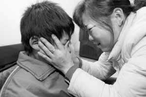 12月20 日晚10时许,经湖北省十堰市警方半个月的艰苦侦查,该市5名集体“失踪”的聋哑学生在湖南长沙被成功解救并带回十堰,另有两名湖北云梦籍被拐聋哑女学生获救。警方此次摧毁了一个诱骗、强迫聋哑学生盗抢的犯罪团伙,涉嫌拐骗和传授犯罪方法的董煜民等4名聋哑犯罪嫌疑人也一同被押回十堰审讯。图为一位聋哑学生的母亲抱着失踪多日、平安回来的孩子泣不成声。