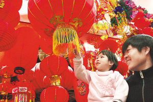 一位小朋友被商场里销售的新年饰品所吸引。新年即将到来,北京新年饰品销售红火。商场里洋溢着浓浓的节日气氛。