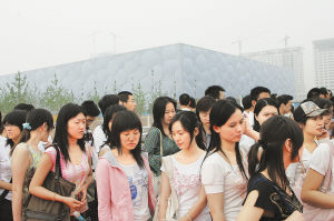 2007年6月,中国人民大学奥运班的同学到国家游泳中心参观。