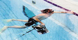 1月29日,在新落成的“水立方”内,盖蒂图片社摄影师亚当带着水下摄影机入水拍摄。拍摄过4届奥运会的亚当是北京奥运会主题图片的拍摄者,当天北京奥运会涉水项目的摄影经理们观摩了他的水下摄影演示,了解了水下摄影的特点。